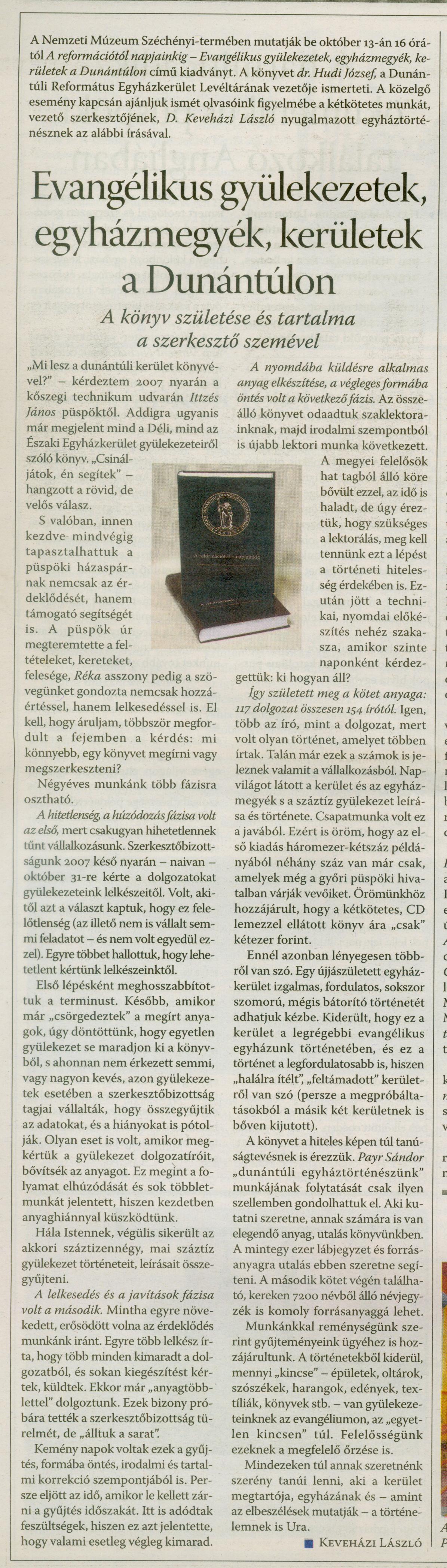 Keveházi László: Evangélikus gyülekezetek, egyházmegyék, kerületek a Dunántúlon