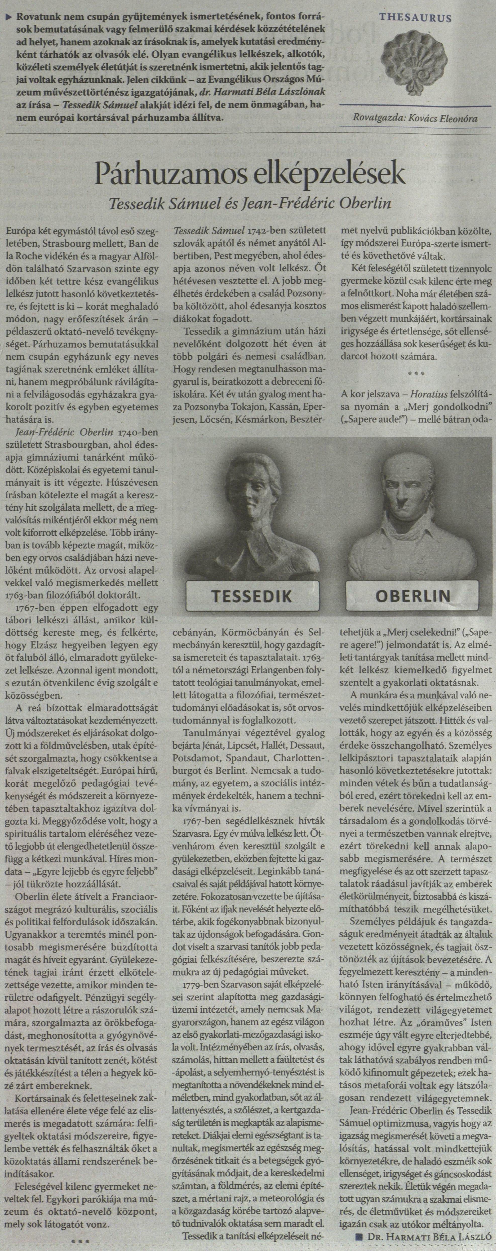 Harmati Béla László: Párhuzamos elképzelések. Tessedik Sámuel és Jean-Frédéric Oberlin