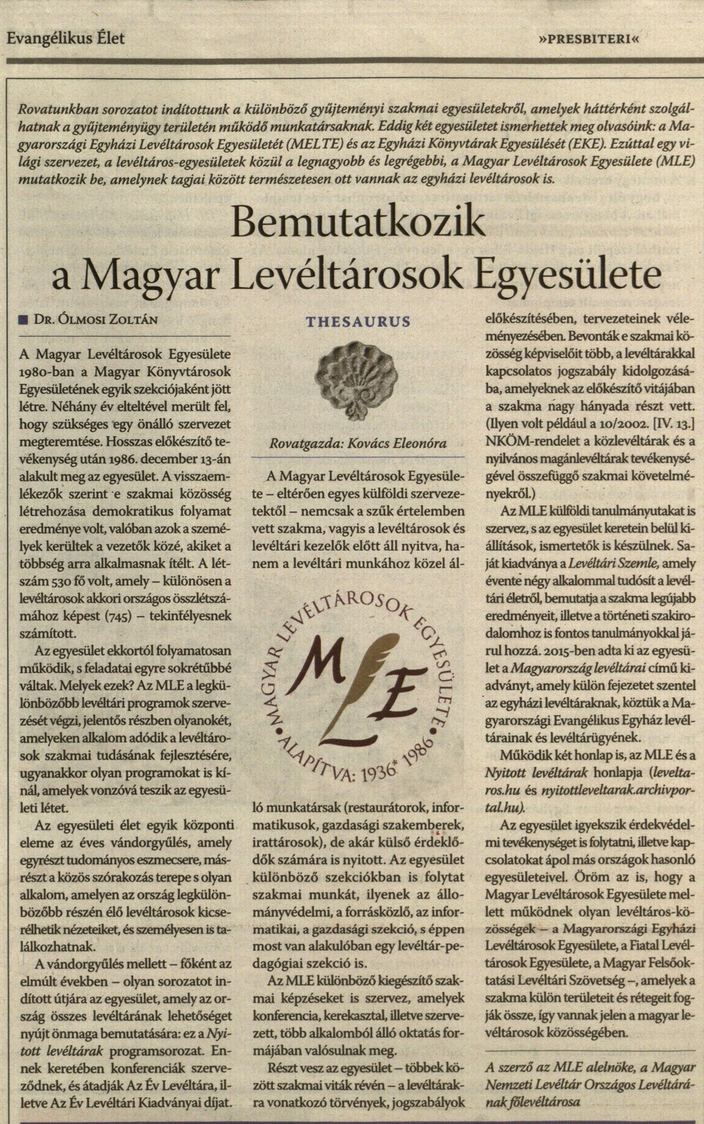 Ólmosi Zoltán: Bemutatkozik a Magyar Levéltárosok Egyesülete