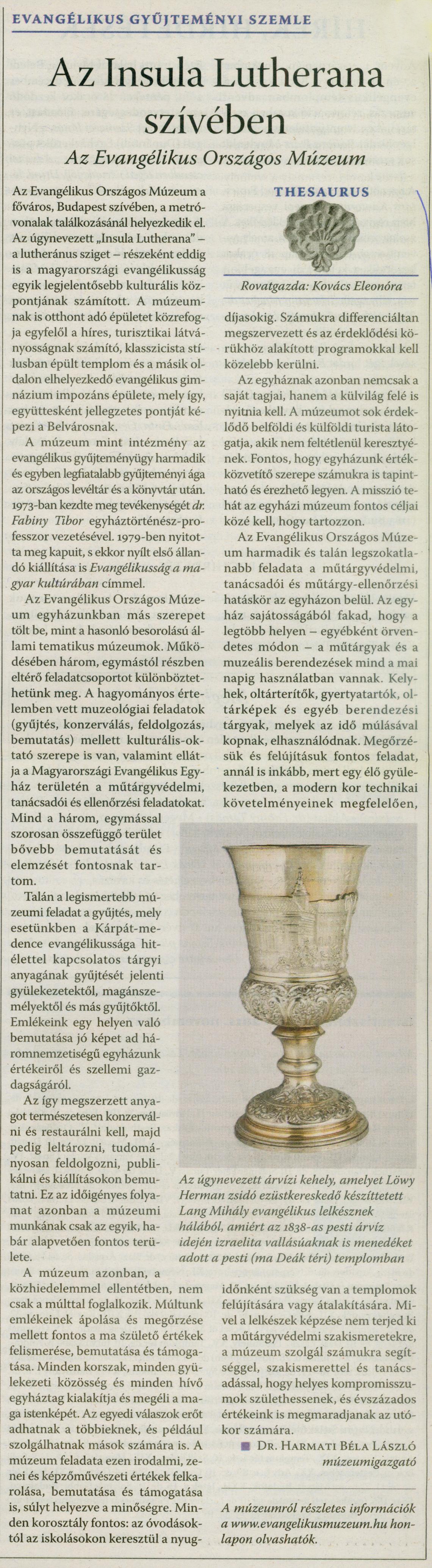 Harmati Béla László: Az Insula Lutherana szívében. Az Evangélikus Országos Múzeum
