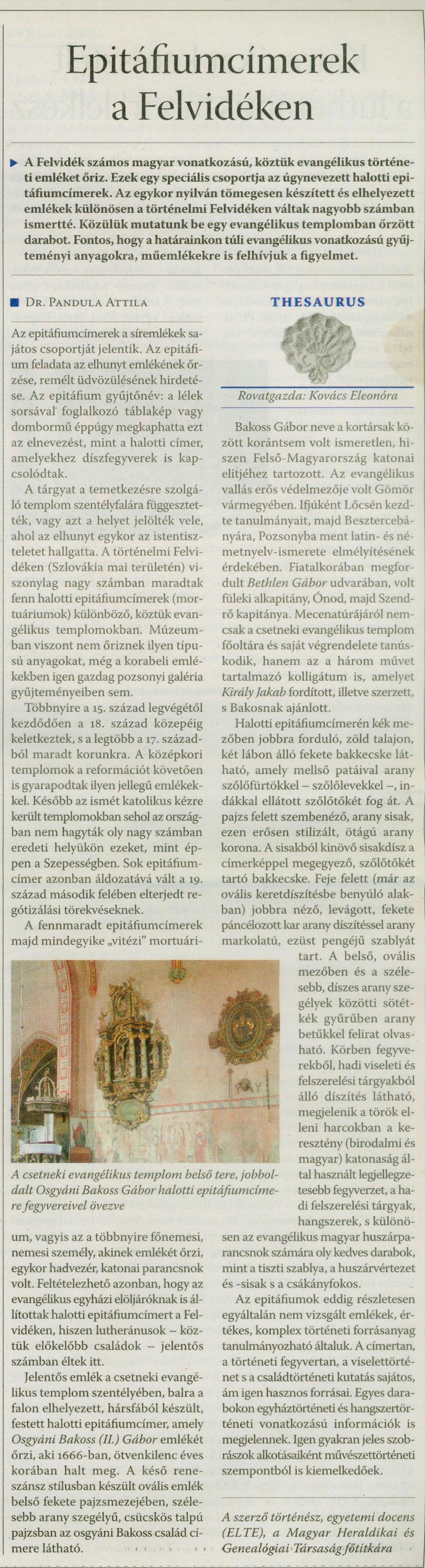Pandula Attila: Epitáfiumcímerek a Felvidéken