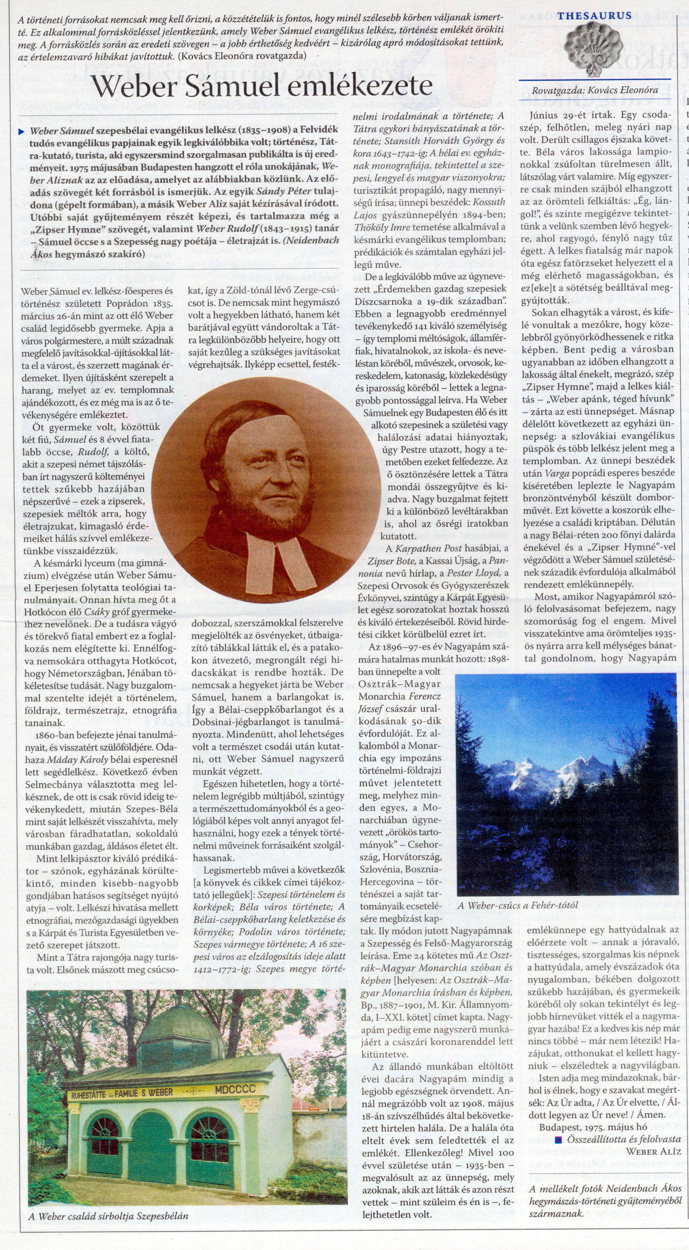 Weber Alíz - Neidenbach Ákos: Weber Sámuel emlékezete