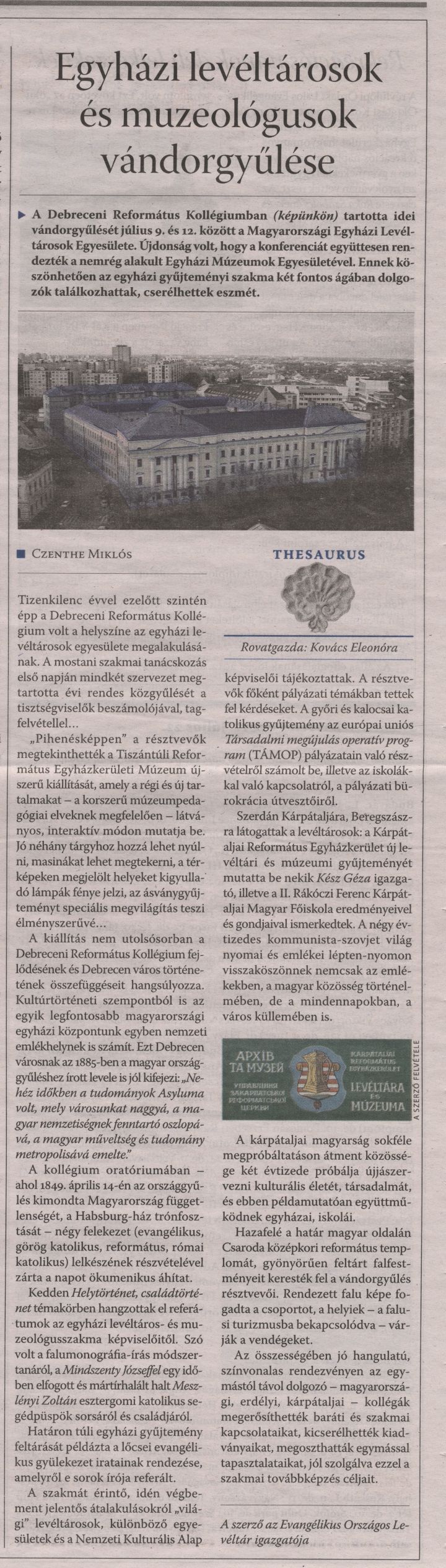Czenthe Miklós: Egyházi levéltárosok és muzeológusok vándorgyűlése