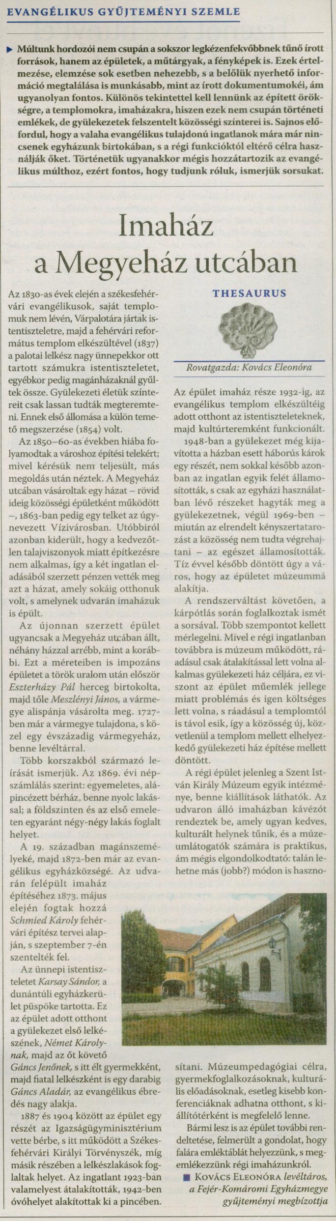 Kovács Eleonóra: Imaház a Megyeház utcában