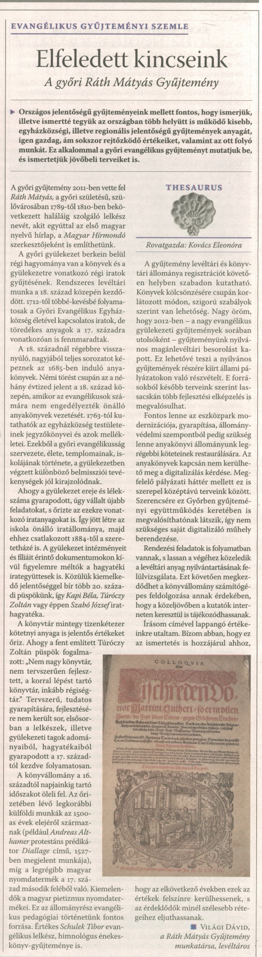 Világi Dávid: Elfeledett kincseink. A győri Ráth Mátyás Gyűjtemény