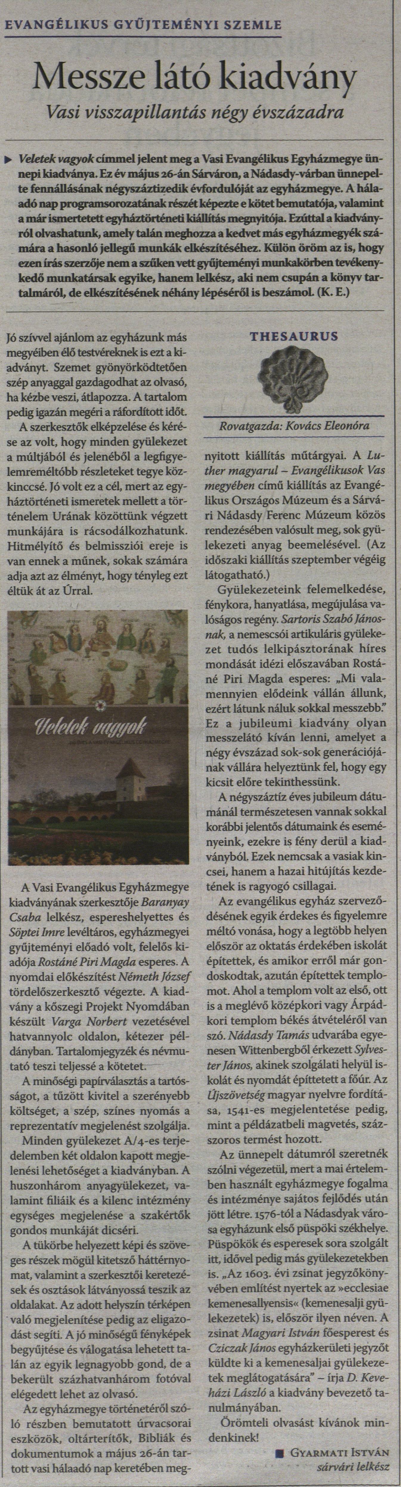 Gyarmati István: Messze látó kiadvány. Vasi visszapillantás négy évszázadra