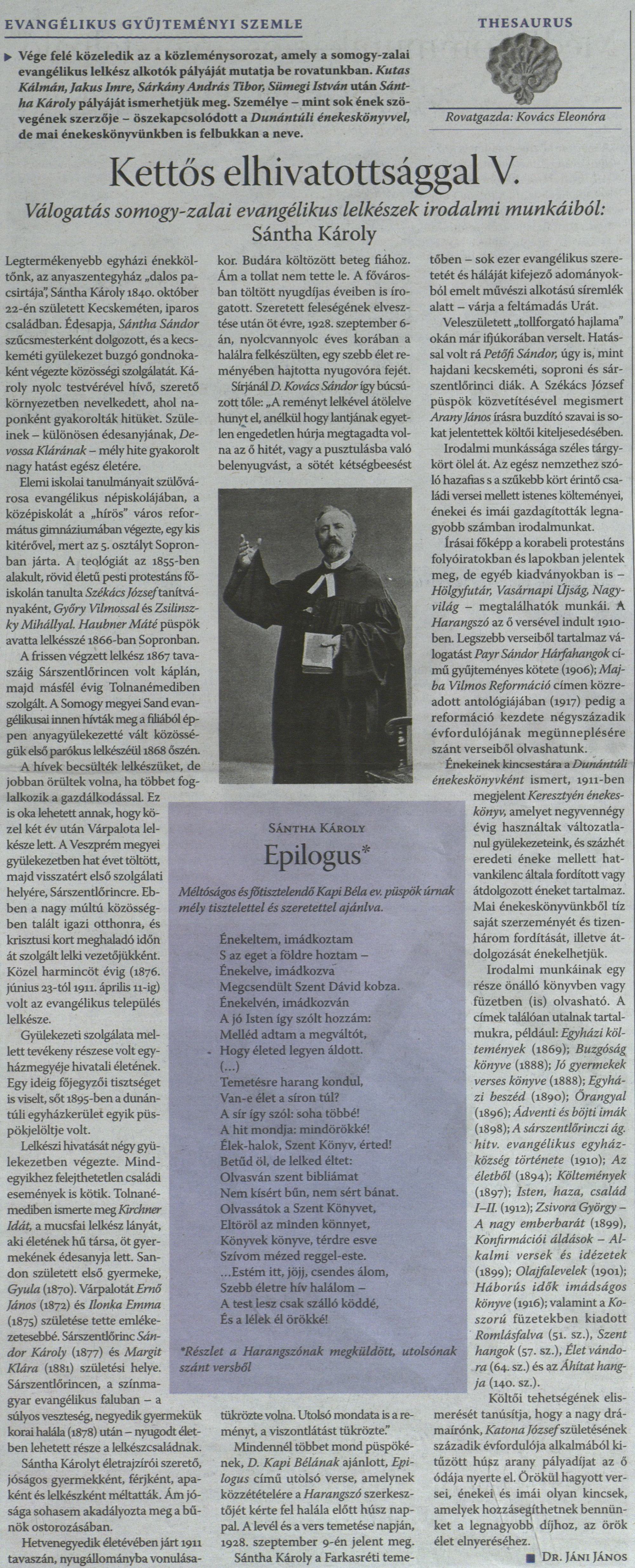 Jáni János: Kettős elhivatottsággal. Válogatás a somogy-zalai evangélikus lelkészek irodalmi munkáiból: Sántha Károly